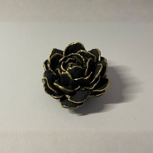 Een handpalmgroot roosje, met subtiele randjes van goud. Een aandenken dat je kunt vasthouden — iets tastbaars dat troost biedt, net als een hand die je nog even voelt.