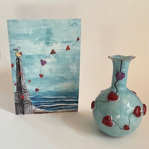 Dit vaasje is geïnspireerd op de rouwkaart. De as is in de klei verwerkt. Hier kunnen ook meerdere van gemaakt worden voor verschillende familieleden of vrienden.